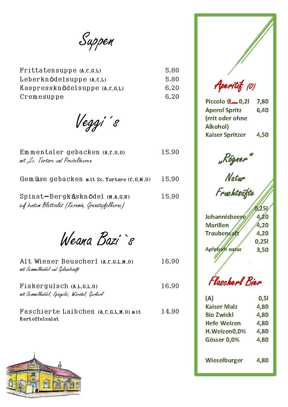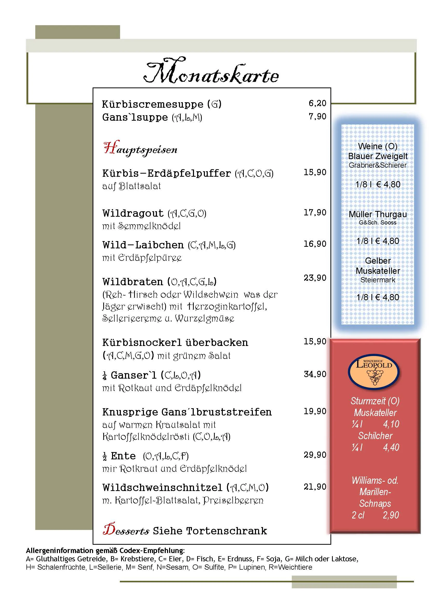 Mo. 20.10. Tagessuppe, Fleischpalatschinken mit Salat € 14,90