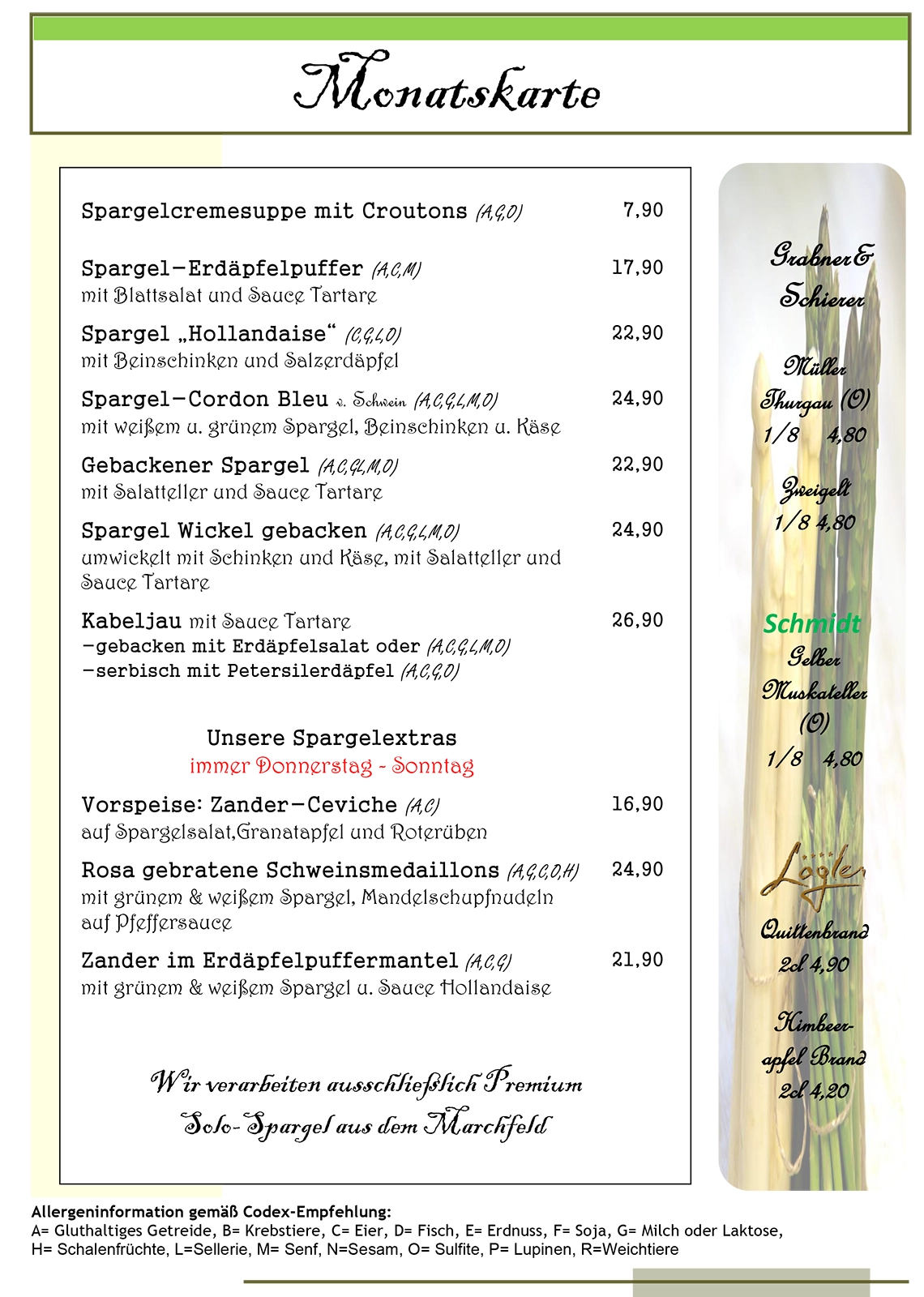 Fr., 1) Kabeljau gebacken mit Kartoffelsalat € Tagespreis /